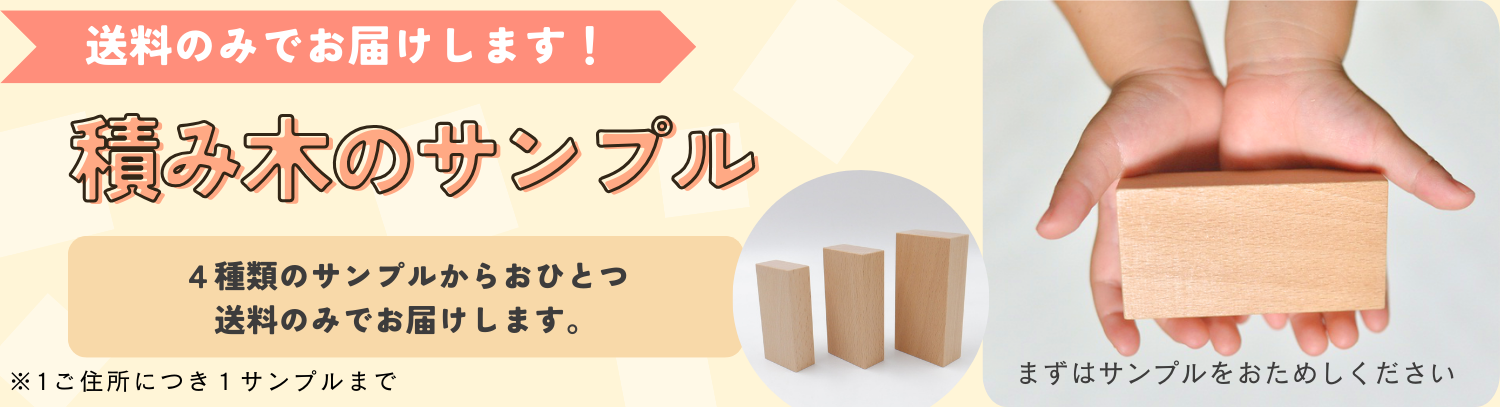 気にならない程度の面取りをほどこしています。サンプルの積み木を発送いたしますので、直接ご検討していただくこともできます。