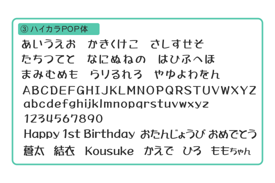 ■お名前はサンプル写真のように他の文字より少し大きめになります。