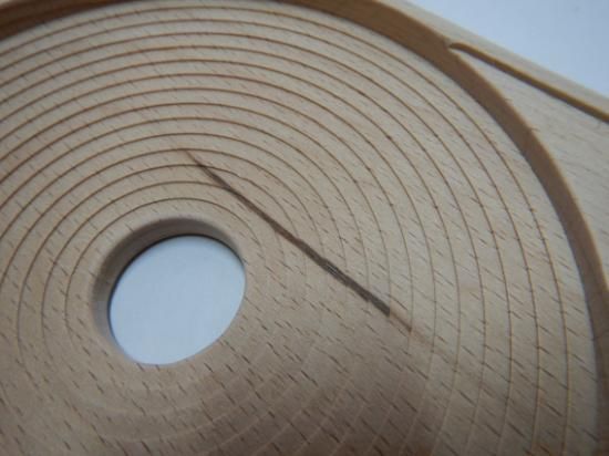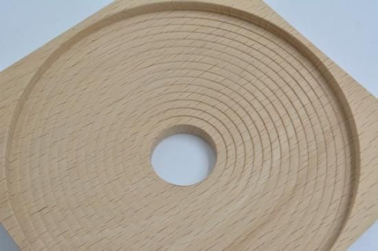 細かいだんだんがついているので、ビー玉がくるくるを長く回って楽しいですよ。後ろにくぐりが入るようにくぼみをつけているので、ずれにくくなっています。