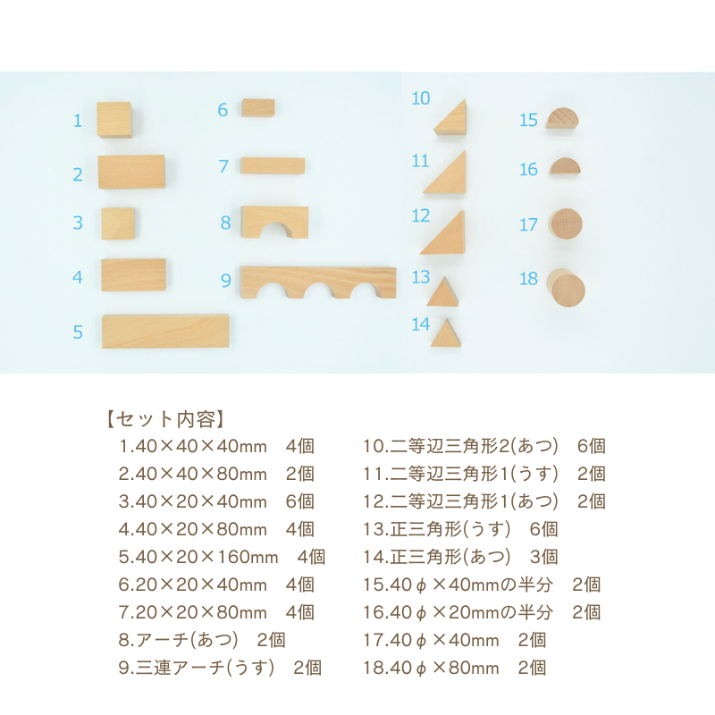 【40mm基尺】40-21 箱入り 18種類の積み木が箱に入ったよくばりセット