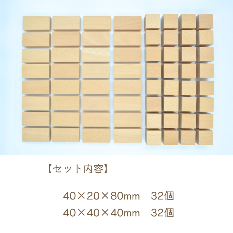 直方体 40×20×80mm=32個と 立方体40×40×40mm=32個のセットです。