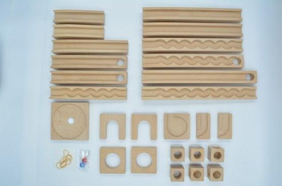 積み木と一緒に遊べる、人気のビー玉ころがしレールのセットです。